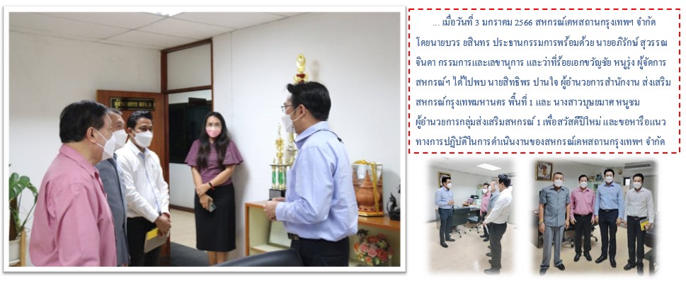 เมื่อวันที่ 6 มิถุนายน 2566 สหกรณ์เคหสถานกรุงเทพฯ จำกัดโดยพันเอก ดร.ศุภณัฏฐ์ หนูรุ่ง ประธานกรรมการ พร้อมด้วย คณะกรรมการดำเนินการ ผู้ตรวจสอบกิจการ และว่าที่ร้อยเอกขวัญชัย หนูรุ่ง ผู้จัดการสหกรณ์ฯ พร้อมด้วยเจ้าหน้าที่ได้สักการะสิ่งศักดิ์สิทธิ์ในโอกาสเข้ารับตำแหน่งประธานกรรมการดำเนินการสหกรณ์ฯ และนัดประชุมคณะกรรมการดำเนินการ นัดแรก